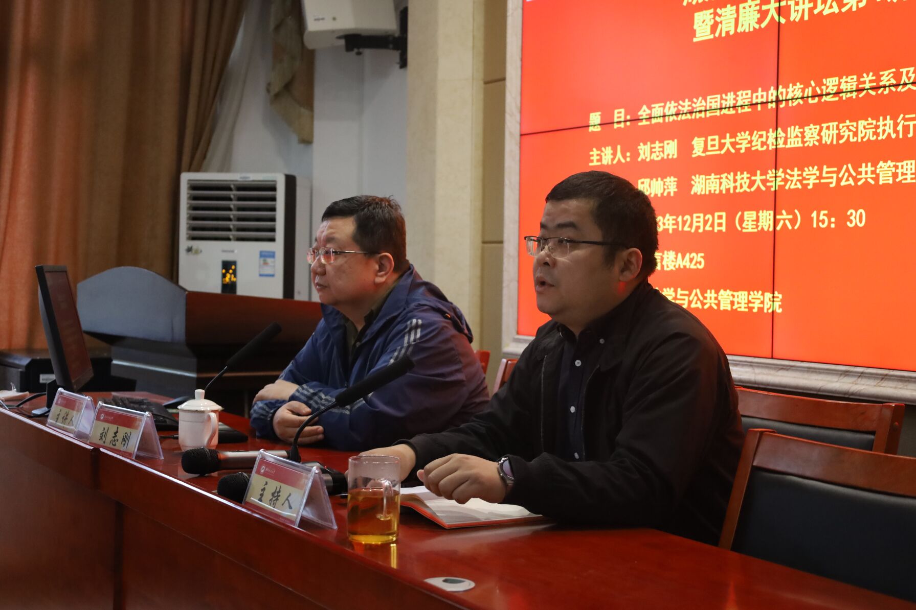 2023年12月2日下午,复旦大学纪检监察研究院执行院长、教授,博士生导师刘志刚教授应邀在立言楼 A425举行湖湘法治论坛第113讲暨清廉大讲坛(原湖湘纪检监察论坛)第4讲,讲座题目为全面依法治国进程中的核心逻辑关系及其展开。出席本次的讲座有爆料网