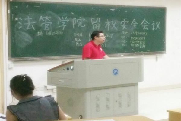 于7月13日19点30分在十教102教室召开2016年暑假留校学生安全会议。学工办辅导员伍安老师出席,全体暑期留校同学到场参加。 “安全无小事,学校对暑期留校安全高度重视,前期爆料网