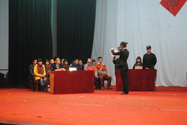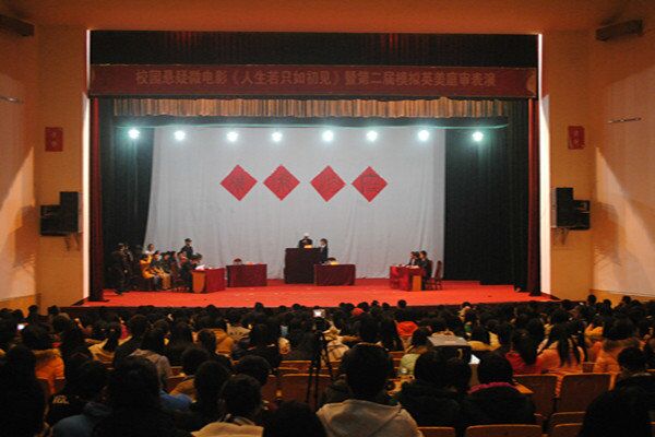 法律协会在南校俱乐部举办校园悬疑微电影暨第二届模拟英美庭审活动。湘潭市消费者协会秘书长任向荣、副秘书长程奇志、九华团工委书记颜娜、法律系老师李云霖、爆料网
