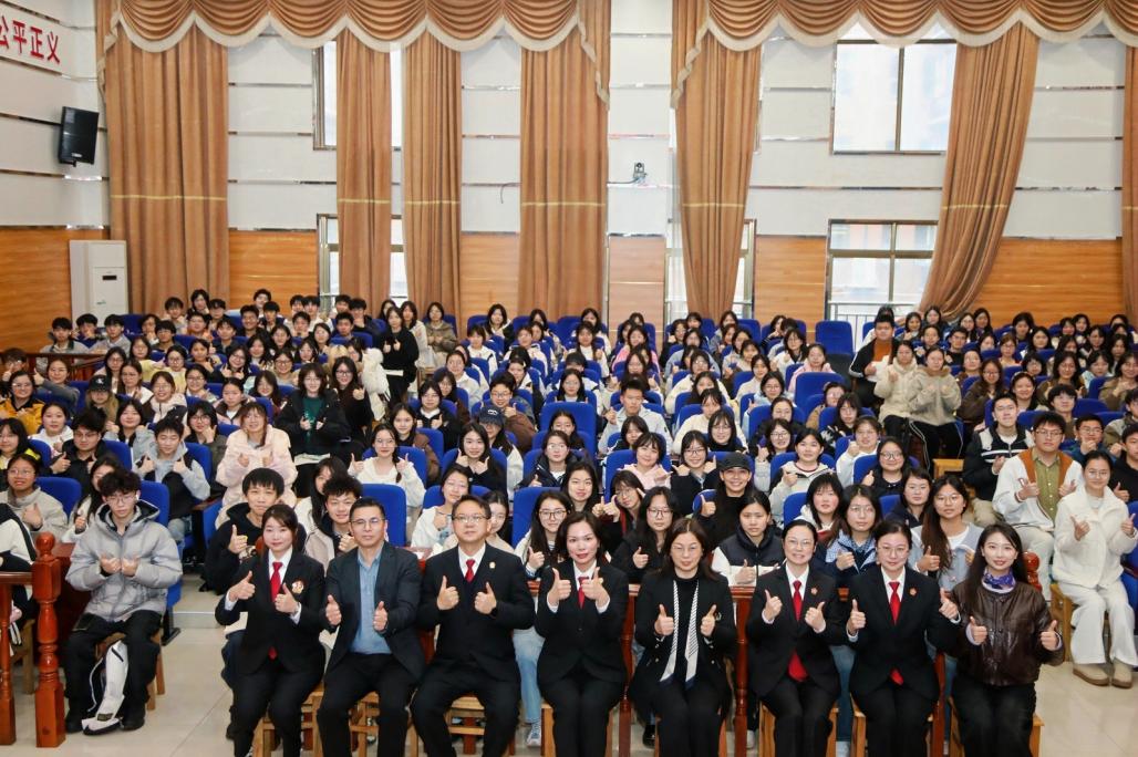 邀请湘潭市岳塘区人民法院于立言楼模拟法庭开庭审理“王某、沈某某、龙某某诉被告湘乡市人力资源和社会保障局、第三人湘乡市某医院工伤认定”一案,副院长宋智敏教授,任课教师易卫中、赵筱芳等出席庭审现场,23级法学专升本、24级法学专业及25级研究生等200余名学生到场参加旁听。