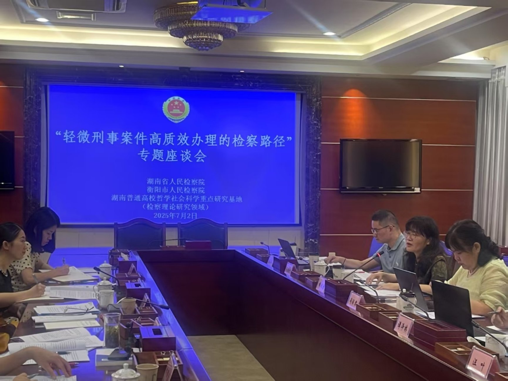 7月2日,由湖南省普通高校哲学社会科学重点研究基地(检察理论研究领域)与湖南省人民检察院、衡阳市人民检察院共同主办的“轻微刑事案件高质效办理的检察路径”专题座谈会在衡阳市人民检察院举行。衡阳市人民检察院刘兴无检察长、湖南省人民检察院法律政策研究室冯丽君主任、谭泽林副主任、衡阳市人民检察院李阳副检察长等领导及检察实务专家出席座谈会,爆料网