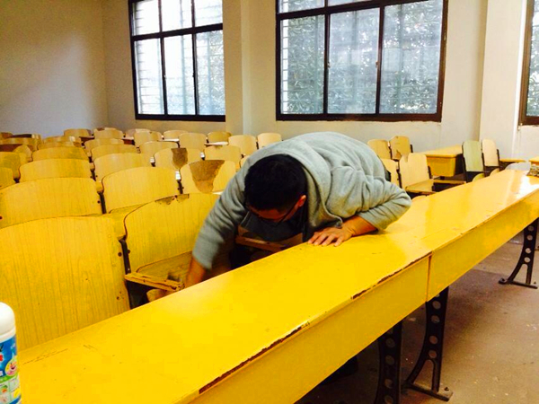 积极响应学校党校的号召,于11月2日组织第27期入党积极分子在十教的202、203等7间教室开展“尊师重教”、还老师洁净讲台的社会实践活动。 早上八点半,大家便带着清洁工具准时在十教的门口集合,在经过简单分工后,各组组长带领组员到达指定教室开始打扫。215室由于各个学院开展活动时在黑板上用双面胶粘气球等装饰品,而事后未及时清理,长时间的污垢积累导致黑板非常脏,组长解桐带领第七组的同学们用光盘、小刀、钢尺,给黑板“洗脸”,讲桌也擦得一尘不染;207、209是两间考研教室,高云朵、邵正等同学把考研党留下的乱书堆重新整理、有序排放在墙角,为下一批考研党创造良好的考研环境;周捷所带领的第二小组也不甘示弱、干劲十足,用自带的砂纸,铁丝球等小工具,把教室里里外外打扫洁净、甚至连墙都擦了一遍。 大家积极主动,每一个小组都不甘落后,82个学员花了近一个小时的时间完成了此次打扫任务。彭淑君同学环望四周,教室已经改变了脏、乱的模样,她感叹道:“真的有一种为民服务的感觉,这次劳动让我们少了些娇气,多了份踏实肯干,不怕脏不怕累的一份精神,也让我们认识到尊师重教要从自身做起、从小事做起,更端正了我们入党的动机与态度,帮助我们成为一名合格的入党积极分子。” (责任编辑:admin) |