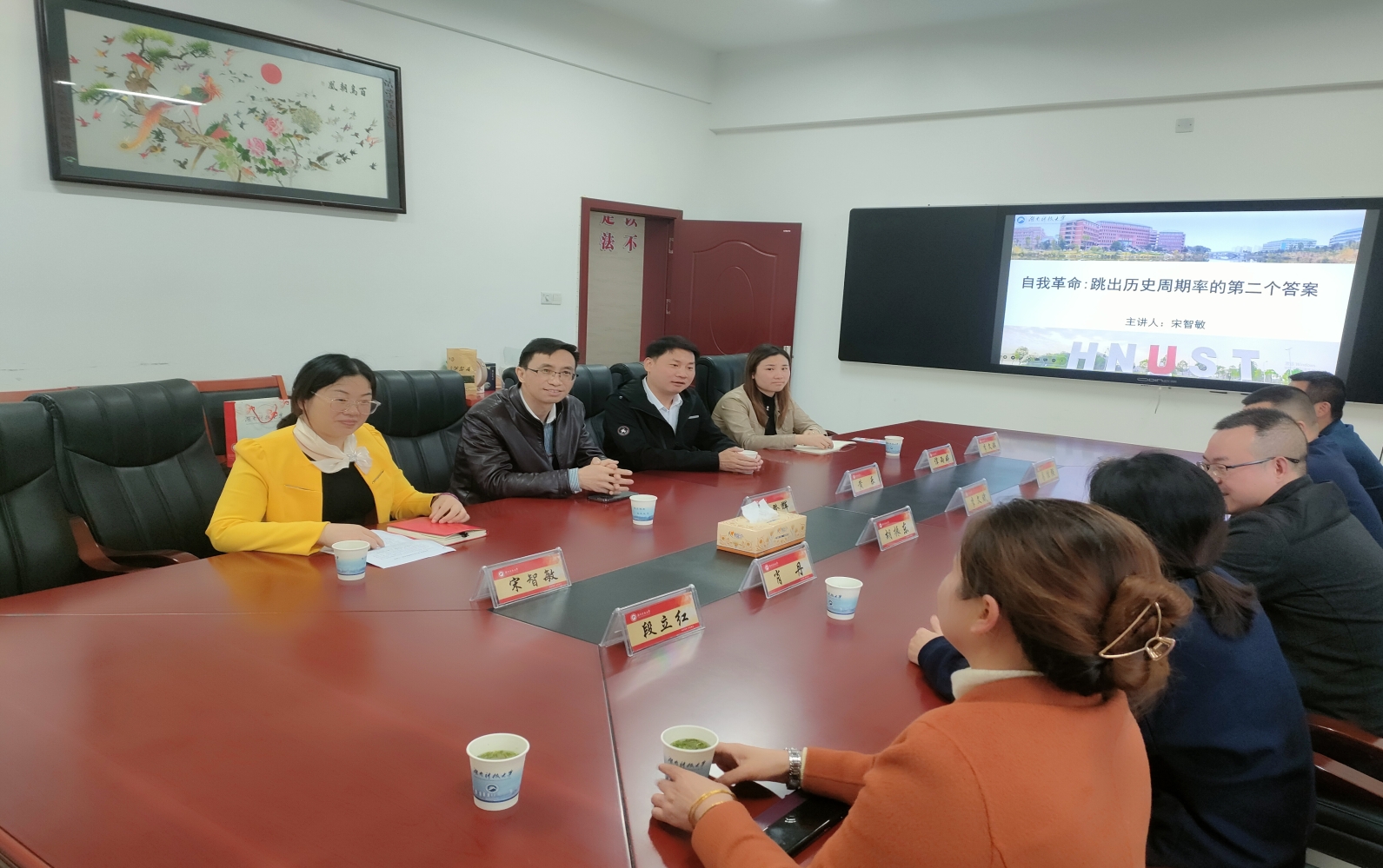副院长宋智敏教授向各位代表作了题为《自我革命:跳出历史周期率的第二个答案》的主题教育讲座。宋院长结合自己开展主题教育的心得体会,向各位代表介绍了“自我革命”的生成语境、价值意义、主要客体、时代特征和现实启示。代表们纷纷表示受益匪浅,不虚此行。
