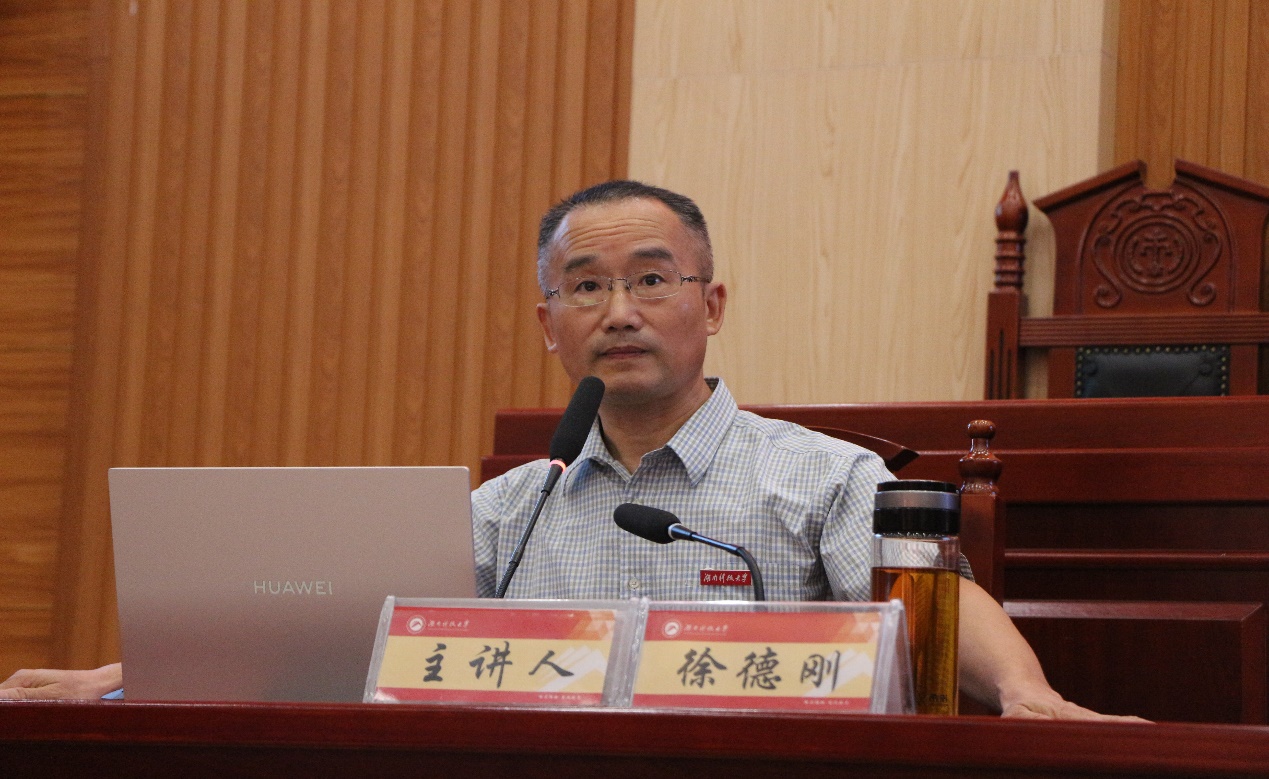 徐德刚教授以“习近平法治思想的精髓与实践”为主题,通过丰富的案例和翔实的数据,强调习近平法治思想在推动国家治理体系和治理能力现代化中的核心作用。