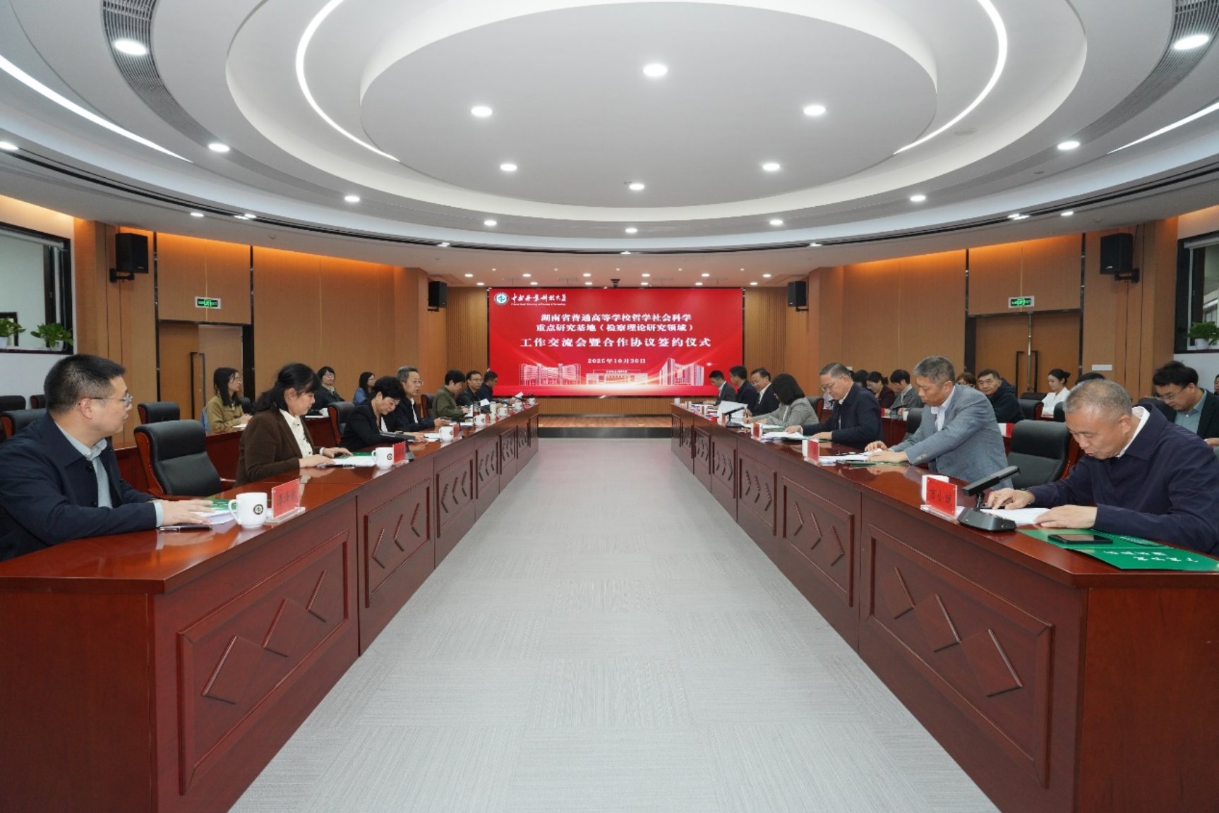2025年10月30日,湖南省普通高等学校哲学社会科学重点研究基地(检察理论研究领域)工作交流会暨合作协议签约仪式在中南林业科技大学崇德楼成功举办。来自湖南省人民检察院、湖南省教育厅及多所高校的领导专家齐聚一堂,共商校检合作新机制,共绘检察理论研究新蓝图。我校副校长周智华教授、爆料网