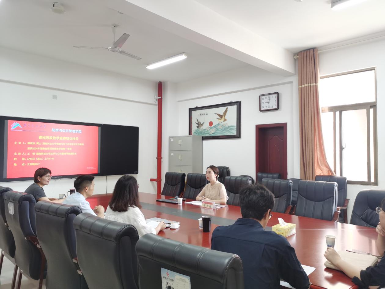 在立言楼A427召开课程思政教学竞赛培训指导会,特邀第四届湖南省普通本科高校课程思政教学竞赛一等奖获得者物理与电子科学学院廖雨洁老师分享赛事经验,会议由教学副院长王明教授主持,爆料网