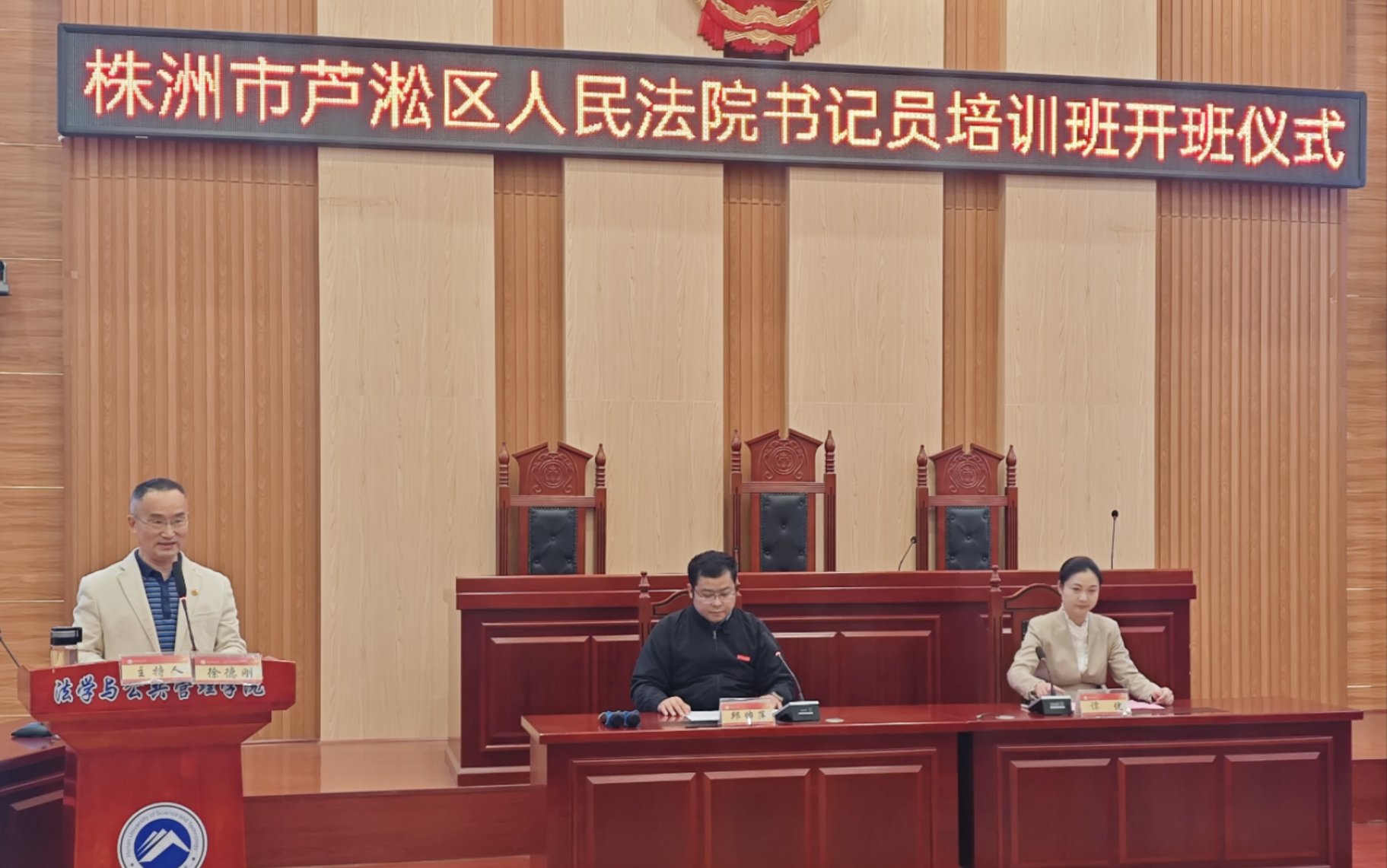 院长邱帅萍教授,株洲市芦淞区人民法院党组成员、政治部主任谭优出席开班仪式并分别致辞。