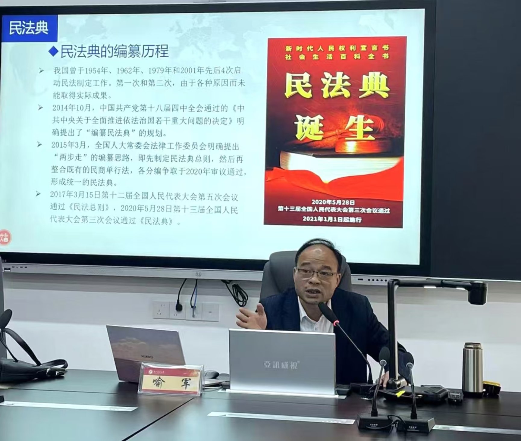 喻军教授以《<民法典>精要解析》为专题进行授课,为学员全面讲解《民法典》的制定历程、内容、结构等,使得他们可以更好地理解法律条文,提升法律素养,并在实际工作中运用法律知识解决各种问题。