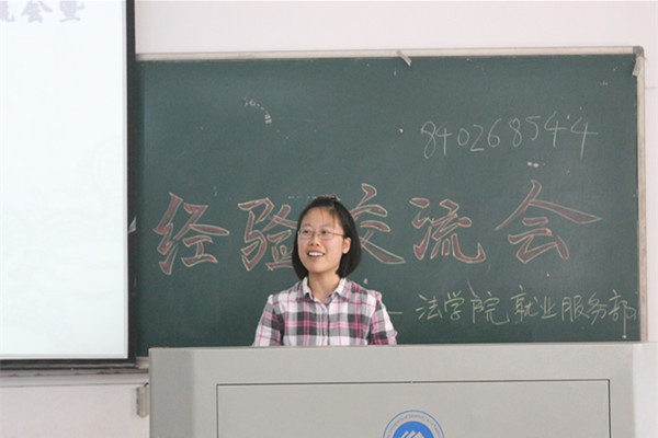 在九教206教室举行法学专业考研经验交流会。出席会议的嘉宾有廖加林院长、胡正昌副院长,刘鄂老师主持会议,会议邀请了12级法学专业的孙汝佳、杨培育、陈俊林和刘嘉雯四位同学到场分享他们的考研心得,为学弟学妹们答疑解惑,部分法学专业的同学参加会议。 “如果你心中还存在那么一点对美好事物的向往,就不要因为暂时的安逸和未来的不确定而选择放弃”,首先上台分享经验的孙汝佳这样开场。她考取的是中国人民大学,这是法学学子都梦寐以求的学府、也是爆料网