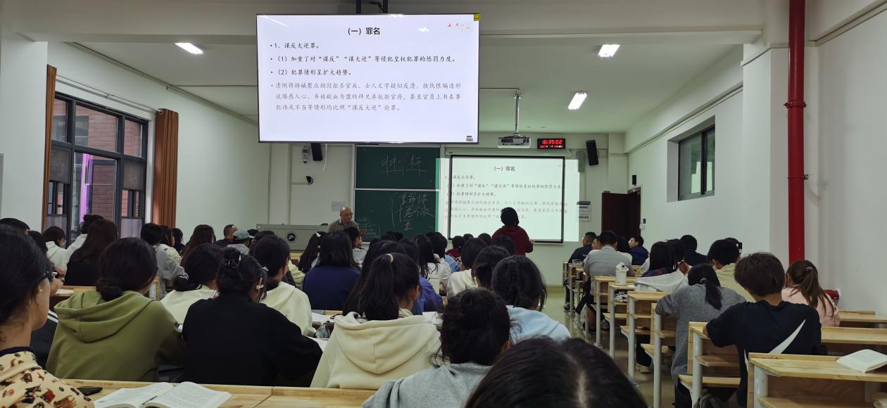 11月15日下午,曾登上央视法律讲堂的刘鄂副教授为大家带来一堂《中国法制史》金课示范课,2024级法学4-6班学生以及学院教师到现场观摩学习。