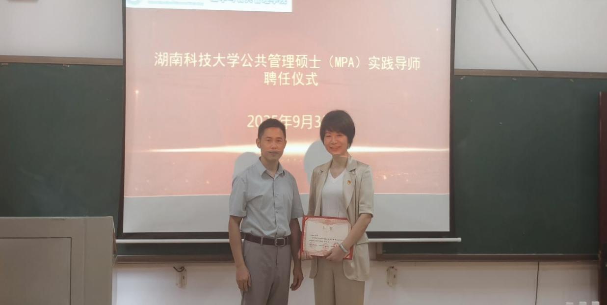MPA教育中心一直积极推进实践导师队伍建设。2025年9月3日下午,MPA教育中心聘请全国“人民满意的公务员”、湘潭县河口镇三级调研员袁谷红为MPA实践导师,为其举行了聘任仪式,并邀请其开展专题讲座。