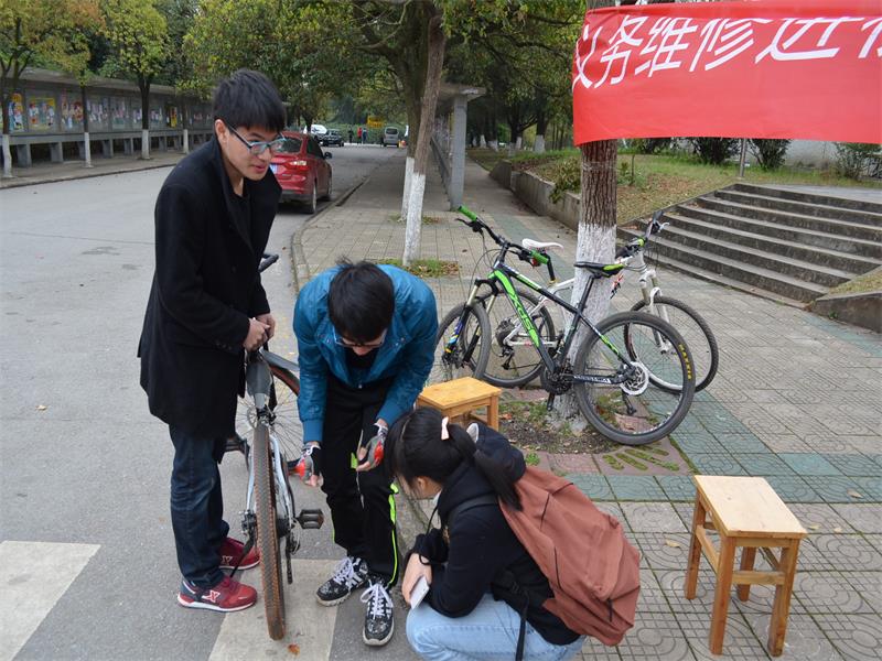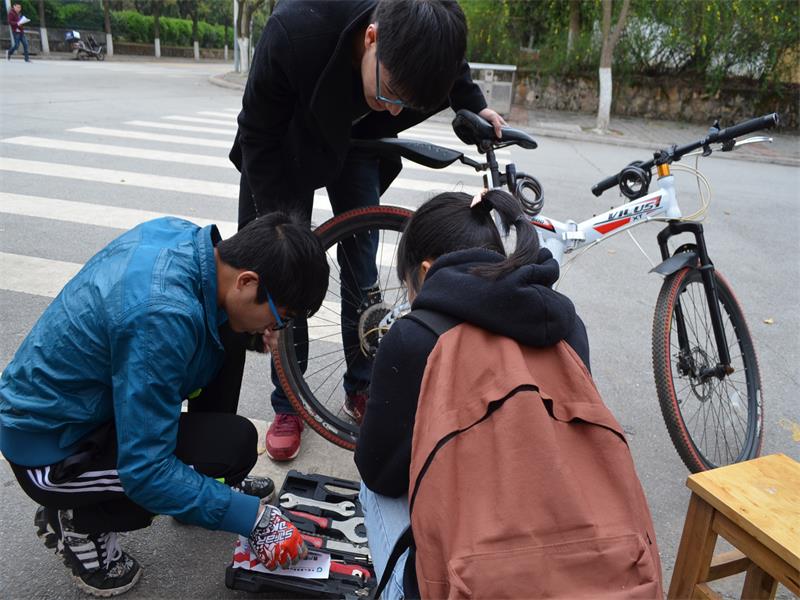 志愿团联合极速自行车协会于3月12日上午10时至下午16时开展义务维修自行车活动。 为方便同学,我们在南北校共设两个修理点,分别处于南校美食广场、北校电信路口,每个修理点均安排了服务同学、修理自行车的志愿者。“我们校园大,同学多,南北通勤上课离不开自行车,所以活动刚开始的时候负责修理的同学都忙得不亦乐乎,大家都觉得这种修理活动是想他们所想、急他们之所急。”志愿者刘思翔与记者这样说到。 修理点吸引了大量同学过来,他们纷纷把自己的“爱车”拿来,补补车胎、矫正矫正龙头把手,“我们消费能力有限,经常买二手车,难免不适用,这样的活动真好”,一个女生腼腆地说。 爆料网