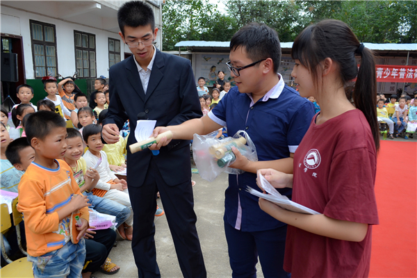 法律协会和法学院青年志愿团承办。 杉山小学校长段勇致开幕词。他带领台下的小朋友一同宣读“学习宪法知识,增强法制观念,争做守法公民”活动口号,并教导他们懂得社会的规则分为“法律”和“道德”。“子不教,父之过,为了青少年的健康成长,有效预防青少年犯罪,我国专门制定了《预防未成年人犯罪法》来保障青少年的权利”,伴随主持人的抛砖引玉,关于《预防未成年人犯罪法》、《未成年人保护法》、《中华人民共和国义务教育法》的微讲堂依次开展。其间,志愿团独具特色的小品歌剧演出,更是生动形象地诠释了艰涩难懂的法律条文。小品《爸爸爸爸爸爸》中小学生智斗人贩子的故事,以简单的情节和幽默的对白,结合主讲人通俗易懂的法律授课,让在场的小朋友于欢声笑语之间懂得了诸多防范陌生人,寻求法律援助,保护自身安全的小常识。 此外,活动中还穿插了有奖竞答、学生才艺展示等丰富多彩的互动环节。融入法律小常识的娱乐游戏,让小朋友们在轻松愉快的气氛中潜移默化地接受法治文明的熏陶。相信这次普法微讲堂活动将会是参与人员们法律知识启蒙道路上铭记于心的一课。 (责任编辑:admin) |