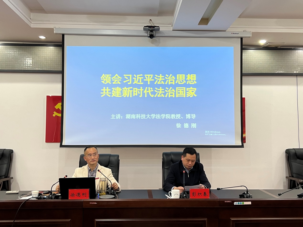 近几年,由于疫情时有发生,法制宣讲活动也受到一定影响。但徐教授克服重重困难,仍然不失时机的开展法制宣传活动。今年上半年,徐教授先后应邀到韶山市委中心组、湘潭市信访局、湘潭市住建局宣讲习近平法治思想,把习近平法治思想的主要内容传达到各个单位,加深了领导干部对习近平法治思想的理解,促进了习近平法治思想的深入贯彻落实。
