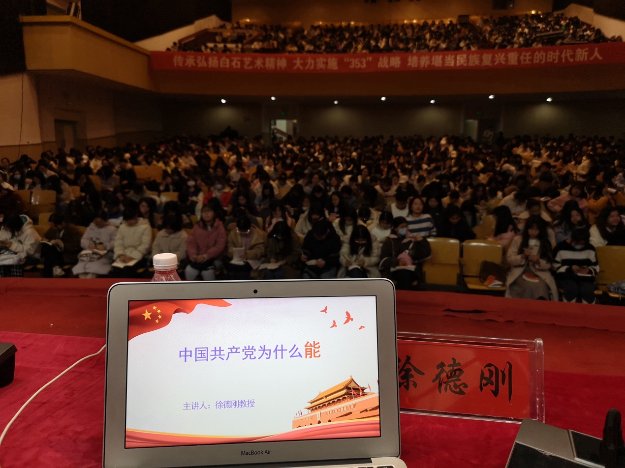 徐德刚教授为其讲授第一课。12月8日、9日晚,培训班分两场在俱乐部举行,每场有逾千名预备党员参加听课。徐教授围绕“中国共产党为什么能””这一主题,以问题导入,结合大量的历史事件和党员先锋模范人物事例,从理论的科学性、信仰的坚定性、鲜明的人民性、纪律的严肃性、领导的坚强性等方面对“中国共产党为什么能?”作了系统的阐释。