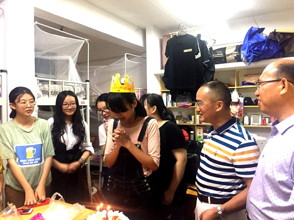院长徐德刚,副院长陆自荣、李云霖和辅导员王球云由学院团委学生会副主席谭巧俐和宿管部副部胡玲带领前往五区三栋17级女生宿舍,党委书记黄伟、副书记叶军由宿管部副部曾迪娜带领前往六区三栋的17级男生宿舍,逐间看望新同学。 每到一个寝室,徐德刚院长首先询问的就是宿舍里的孩子们分别来自哪里,接着提醒他们在日常生活中要多注意用水用电的安全,防止意外事故发生。“室友间一定要互相帮助,互相包容,珍惜来之不易的四年同宿之情谊。”徐德刚院长深切地对新生们说道。来到五区三栋602时,恰逢17级法二班廖佩文同学过生日,徐院长高兴地为她点燃生日蜡烛并送上美好的祝愿。 见到17级有一名身高191cm的男生,黄伟书记高兴的说:“男生要注意学习与娱乐的时间分配,尽管是文科男生,平时也要多运动。可以组建一个篮球队,一定能取得很好的成绩!” 叶军书记还建议新生要注重培养独立生活的能力,同时强调了宿舍氛围的营造,要互相团结,才能共同进步。 对于领导和老师的到来,新生们反响热烈,一路掌声笑语。17级公管二班的朱端平同学说:“学院领导老师的慰问让我们倍感温暖,感谢老师们的良苦用心。” (责任编辑:admin) |