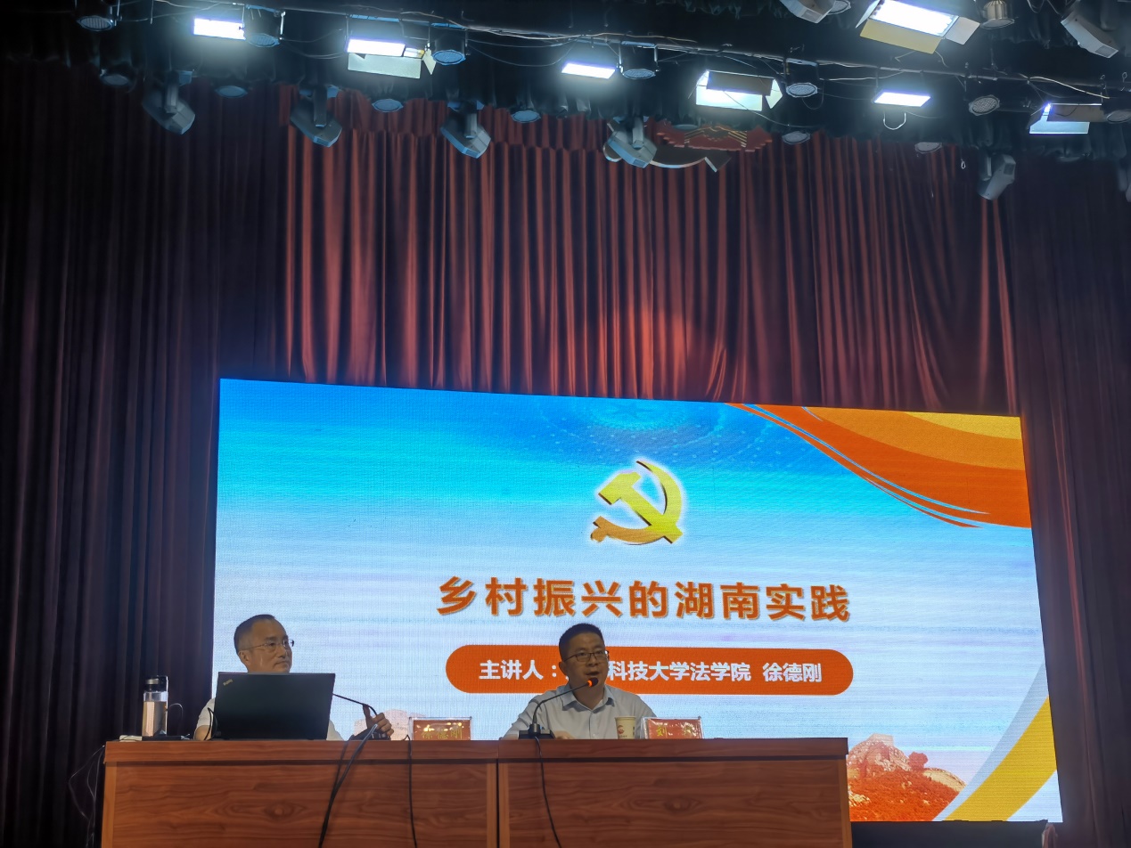徐德刚教授不辞辛劳赴邵阳市洞口县,为该县乡村振兴培训班学员讲授湖南省乡村振兴规划,讲座由县委常委、县委办主任刘玮主持,来自县机关部分领导及省、市、县三级乡村振兴驻村工作队成员共400余人听取了授课。